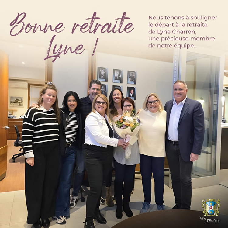 Nous avons le plaisir d’annoncer que Lyne Charron, une précieuse membre de notre équipe, prendra sa retraite le 31 octobre 2024. Après des années de dévouement et d’engagement, elle laisse derrière elle un héritage remarquable et de nombreux souvenirs inoubliables.
