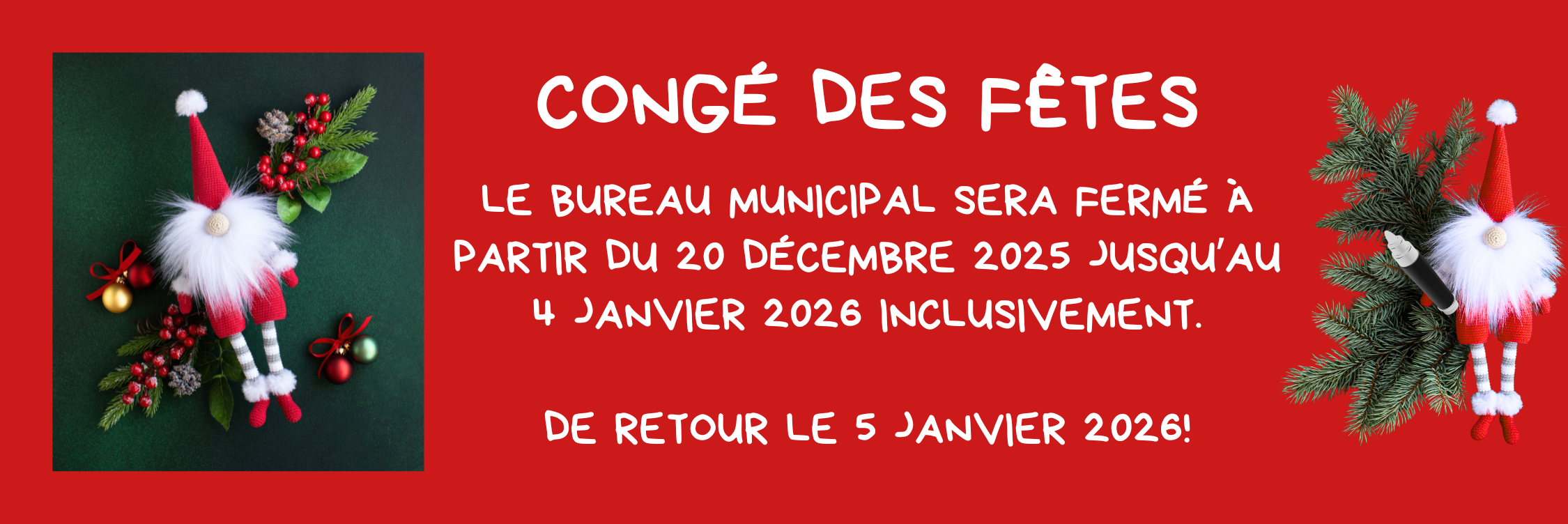 Parade illuminée de Noël 2025 ! ✨ 📅 Samedi 6 décembre 2025 Les festivités débuteront à 16 h, et la parade prendra son départ à 17 h. Un DJ sera présent pour animer l’événement, et 17 chars défileront pour nous illuminer! 🚗 StationnementAucun stationnement n’est permis sur le bord de la route Principale, entre le chemin Passe-Partout et le chemin de la Prairie, ainsi que sur le chemin Raphaël. Des stationnements seront disponibles aux endroits suivants : ▪️Immeuble Ste-Cécile et La Pêche▪️Transcollines Des bénévoles enthousiastes sont recherchés pour contribuer à la réussite de cet événement féerique. Que vous puissiez offrir quelques heures ou être présents toute la journée, votre participation est précieuse et essentielle pour créer un moment inoubliable pour toute la communauté! 📧 Inscrivez-vous dès maintenant : paradeilluminee@gmail.com Cliquez ici pour voir la traduction de ce contenu. La Municipalité est dans l'obligation de communiquer exclusivement en français, lire les détails : Actualité/ Loi 96. |