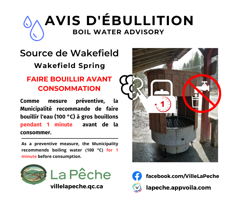 AVIS D'ÉBULLITION DE L'EAU DE LA SOURCE DE WAKEFIELD